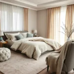 - Цветовая палитра: Приглушенные, пастельные тона – кремовый, бежевый, светло-серый, пыльно-розовый, мятный. Допускаются акценты в виде более насыщенных цветов – бордового, темно-зеленого, горчичного, но в умеренных количествах.